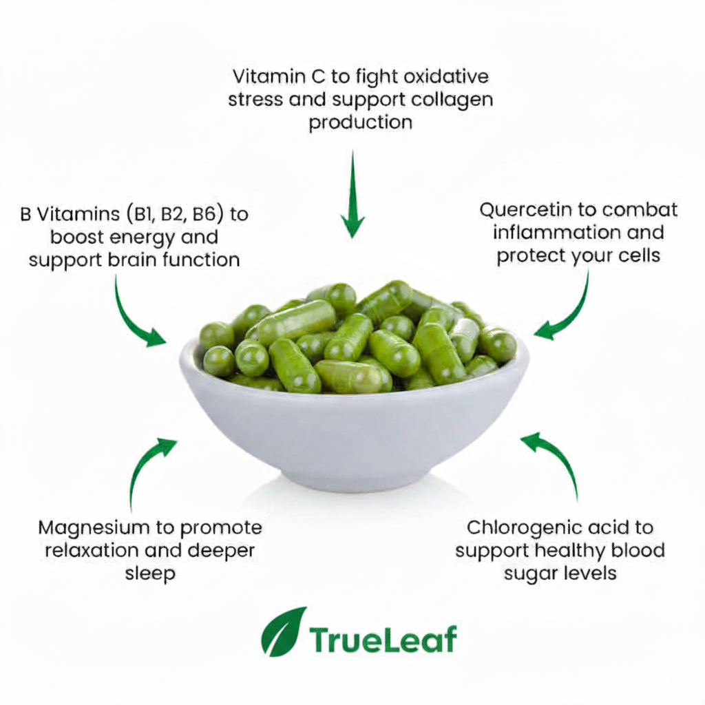 Packed with over 90 essential nutrients—including vitamins, minerals, and antioxidants—TrueLeaf Moringa replenishes your body with what it’s missing. These nutrients: